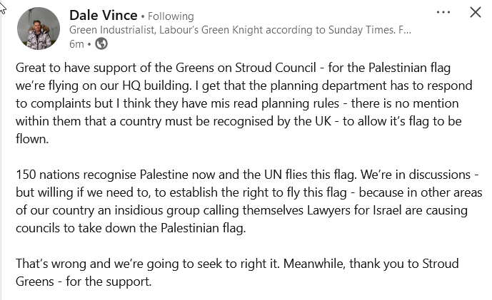 Total bollocks that a flag has to be recognised by the UK government, this is nonsense peddled by Lawyers for Israel. Needs challenging in court!
