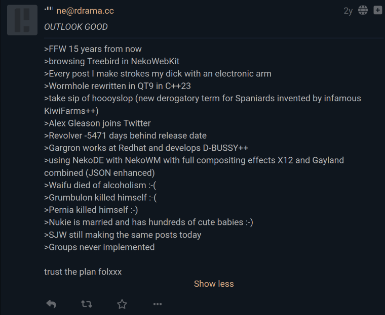"content": "2 years in.\nhttps://s3.clubcyberia.co/pleroma/d6419bb3b22d9a563b519ac46552f44b2f3adacc0ef1b05da501e2081dc7e9d8.png\n",