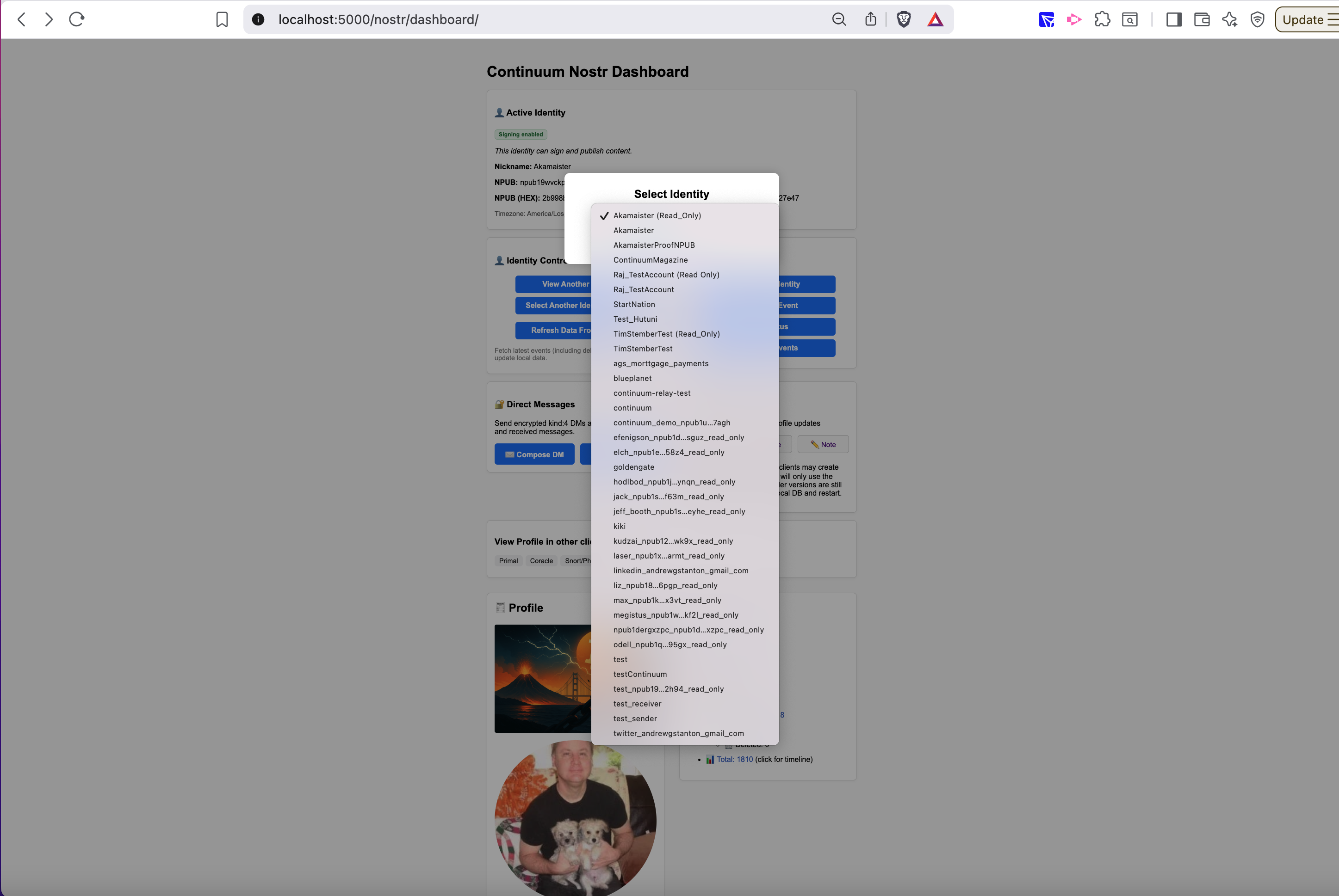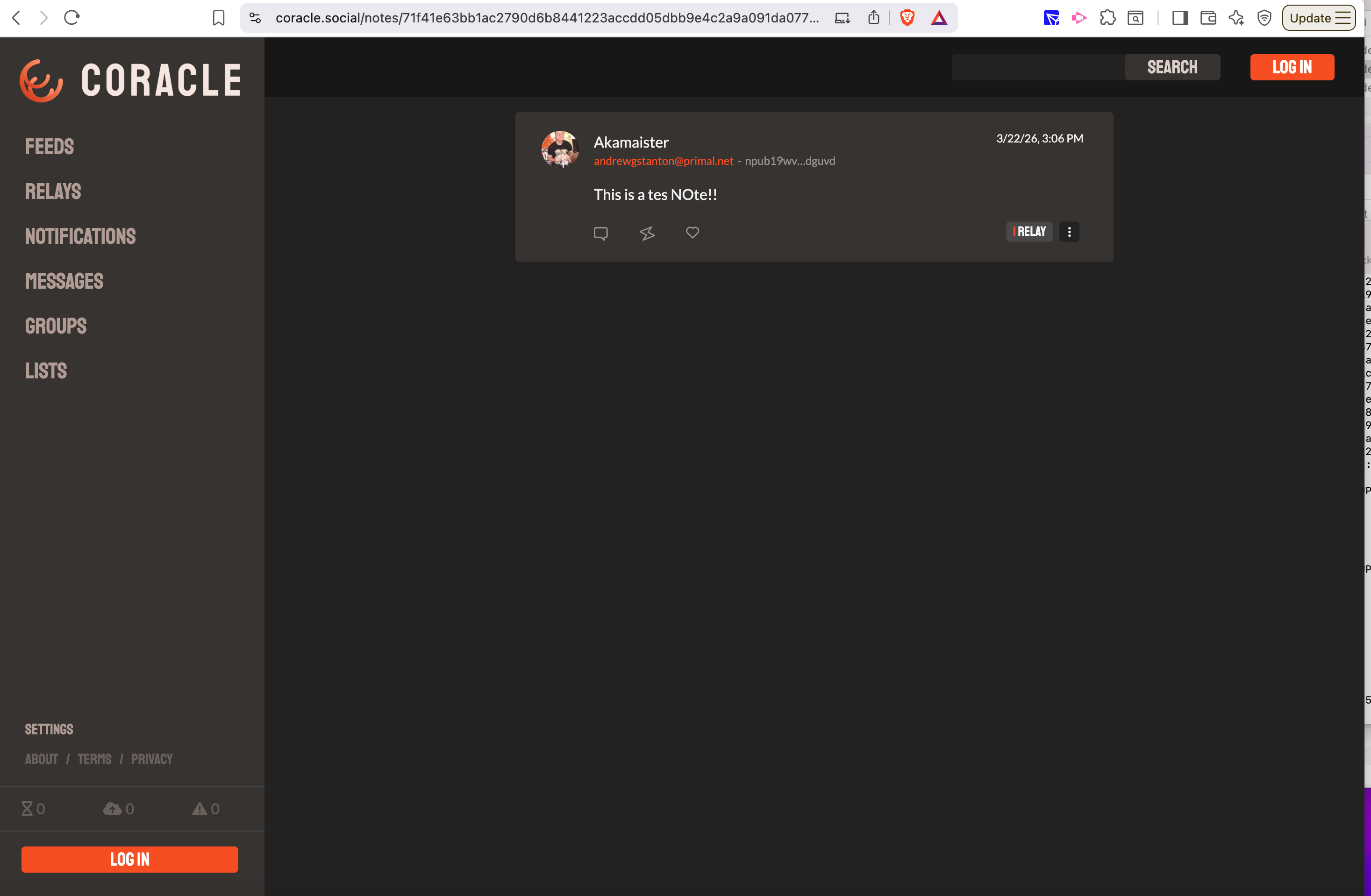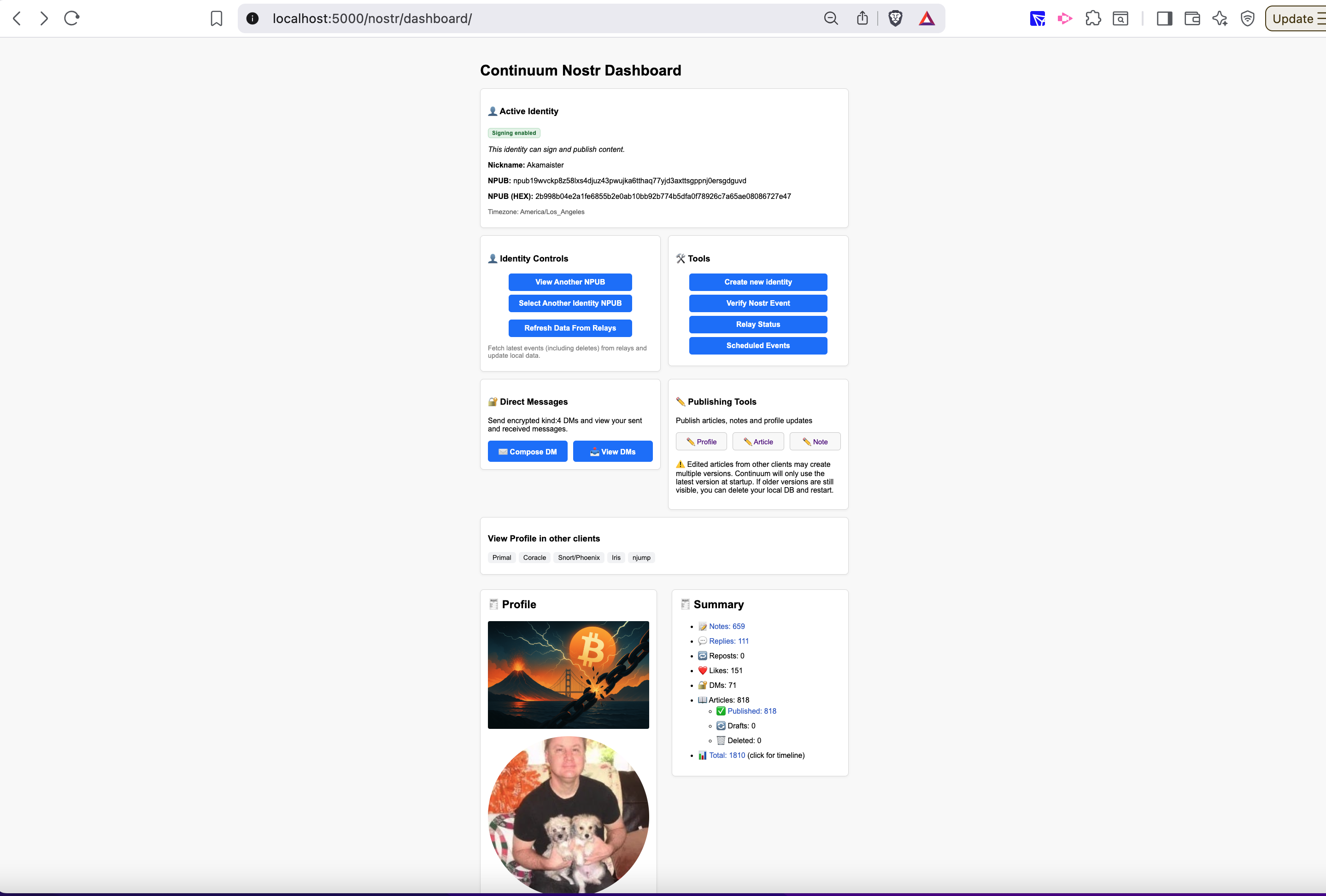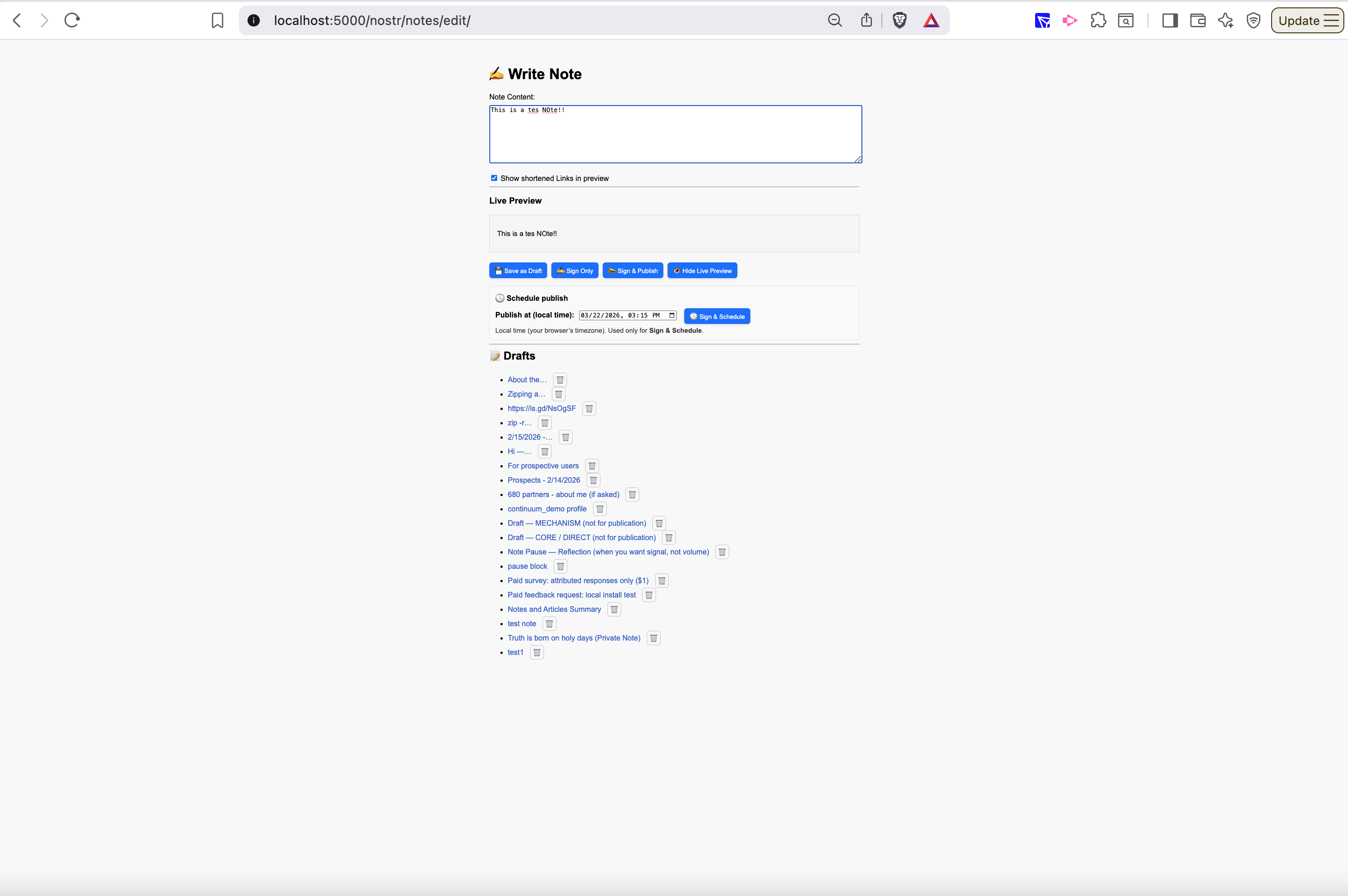 This is a real example of publishing a Nostr note using Continuum running locally — no client required.