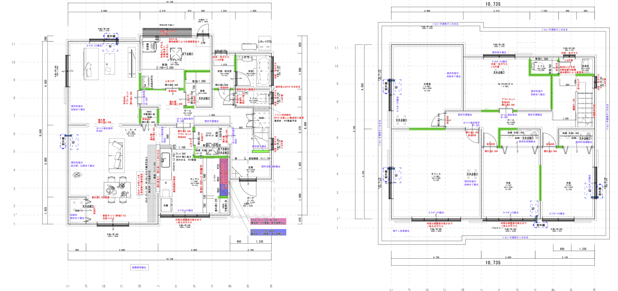 The green walls in the after schematic are new walls they’re building. It also involves completely moving the kitchen from the back to the front of the house!