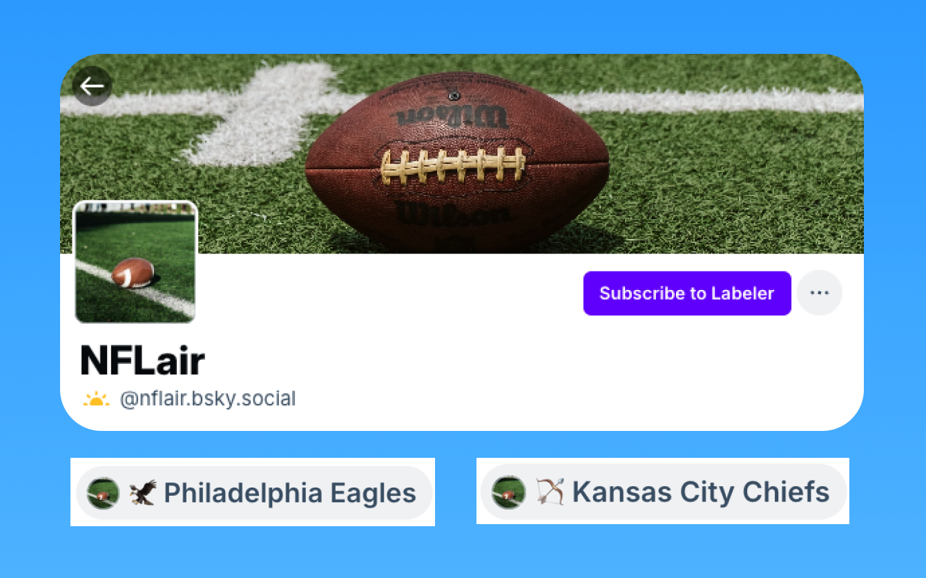 "content": "Super Bowl Sunday is this weekend!\n\nGet a user flair from [@nflair.bsky.social](https://bsky.app/profile/nflair.bsky.social ) to show which team you're cheering for.\n\nHere's how:\nhttps://puffball.us-east.host.bsky.network/xrpc/com.atproto.sync.getBlob?did=did:plc:z72i7hdynmk6r22z27h6tvur\u0026cid=bafkreighxz4mllq2h2dc64llfsgo7oq2s2vnvkmijaeo5ukqhvgwnzkxem\n",