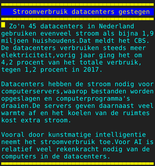 Teletekst bot on Nostr: [105] Stroomverbruik datacenters gestegen