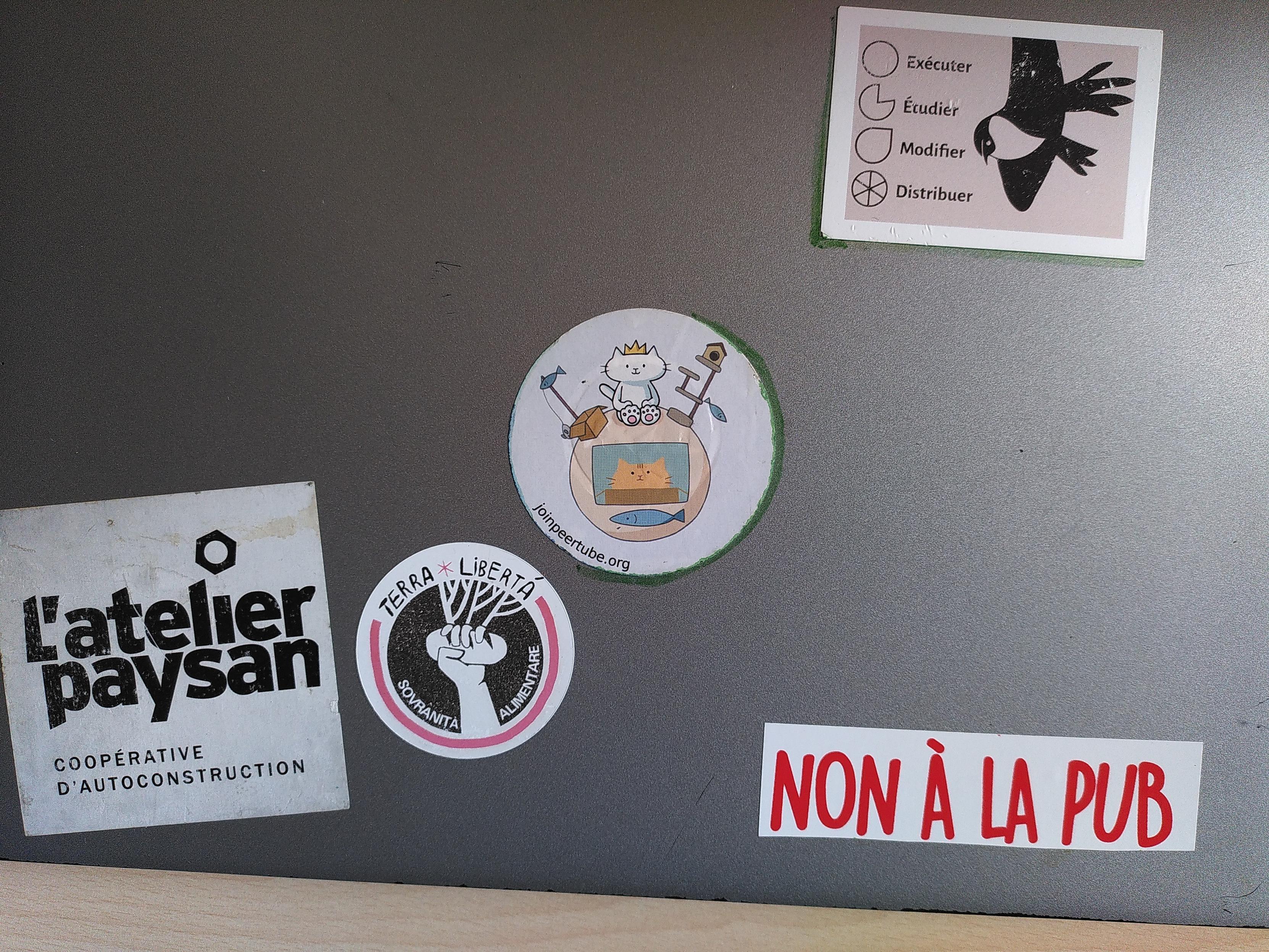 À le boulot, les chefs (bientôt y aura plus de chefs que de faiseureuses) de la DSI ont dit "il est interdit de dégrader le matériel en mettant des autocollants sur son ordinateur"