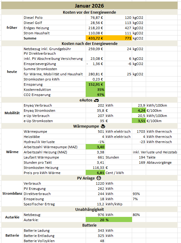 ➡️ Trotz Kälte, wenig PV Ertrag und hoher Stromverbrauche der eAutos konnten 150€ im. Vergleich zur Vergangenheit eingespart werden.