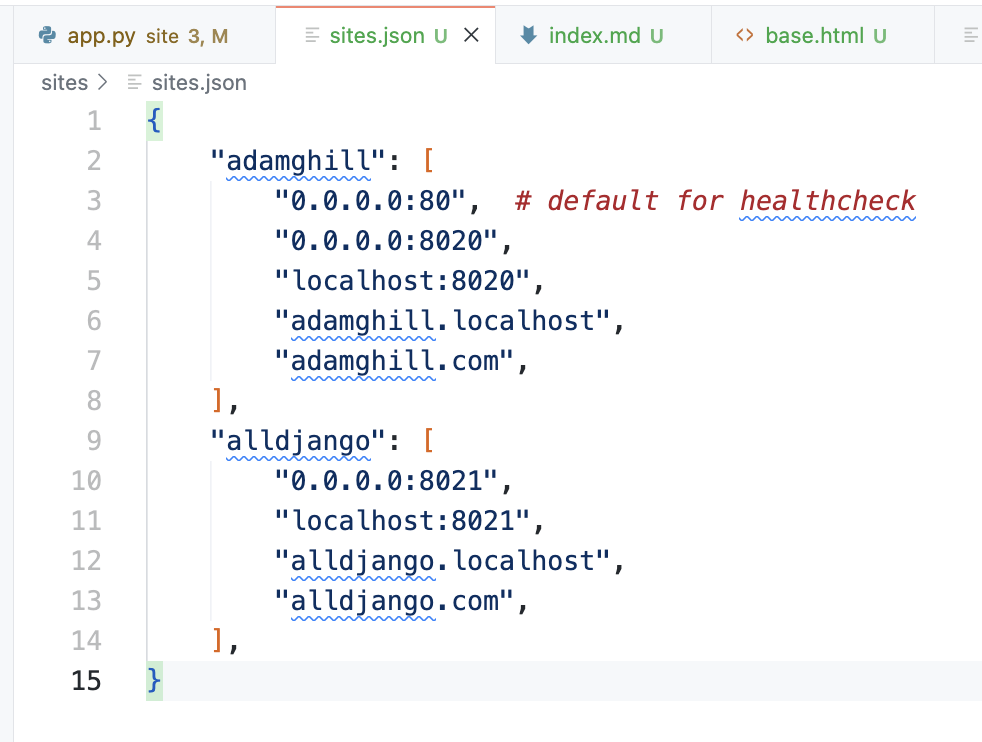 adamghill on Nostr: Prototyping a sites.json file to configure multiple sites. - Dictionary key is the ...