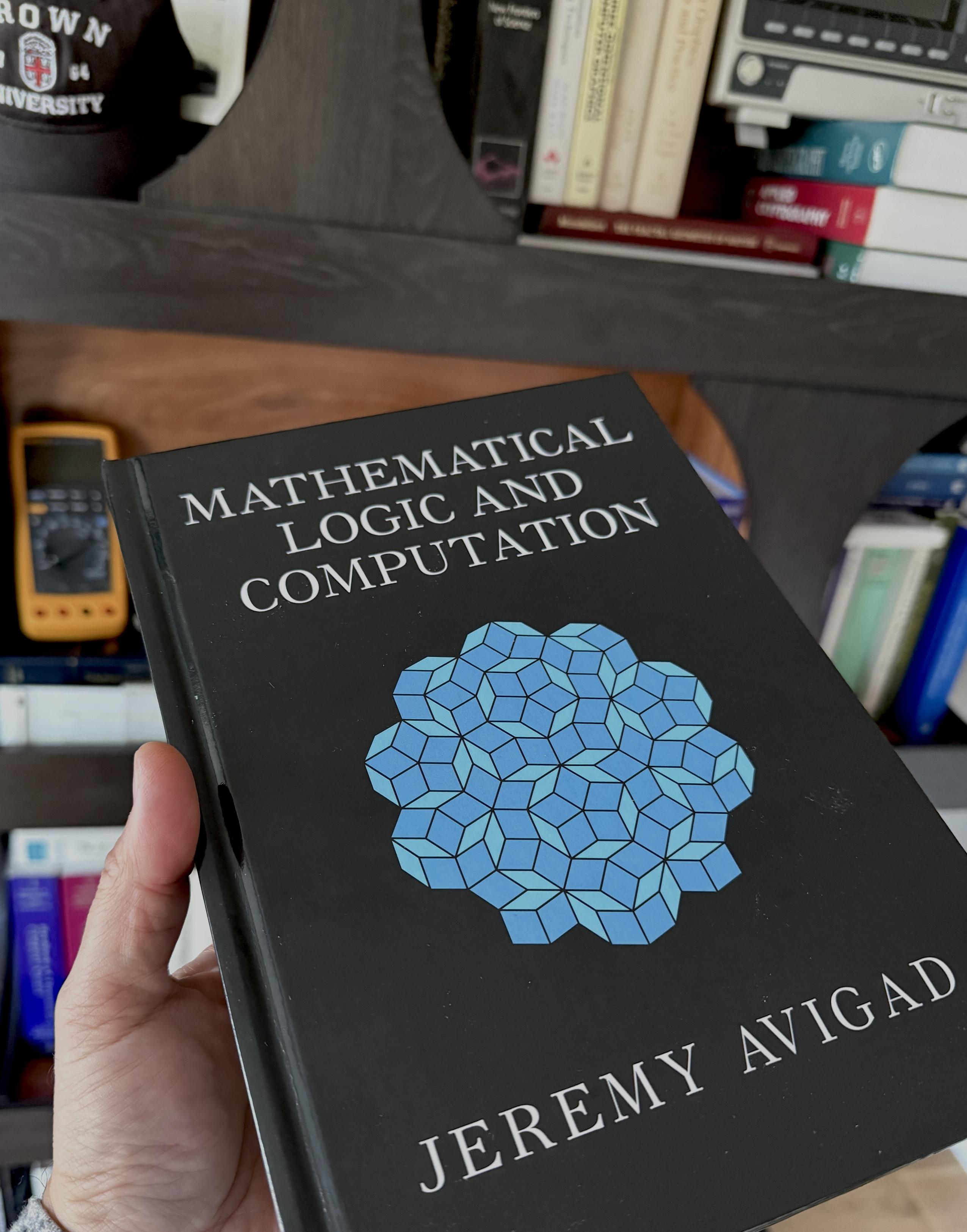 "content": "#Avigad's new text \"Mathematical #Logic and #Computation\" (2023) just arrived in time for the long, holiday break.\nhttps://media.mathstodon.xyz/media_attachments/files/115/634/825/617/140/782/original/ece046f3b7794f29.jpg\n",