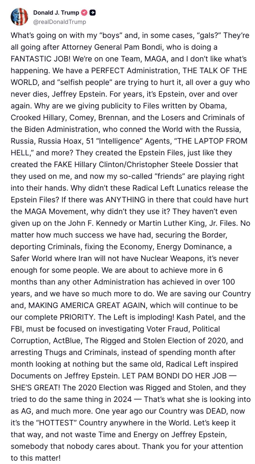 It feels so fucking good to be vindicated and witness everything I hoped happen come into fruition! People were pissy at me when I said I wanted Trump to win, this is why. If the nigress won we wouldnt have this full on sperg out. We wouldnt have Tucker on stage at TPUSA ranting at how the fucking republicans do these performative ”victory” laps while the money is pissed away to israel. Collapsing the Gay American Empire is one thing, getting people to recognize that it is better off dead is another. I wanted Trump to betray his base and when I first heard they were gonna drop the jewstien flight logs my reaction was, ok, do it uncensored you faggots! Of course they censored it more than the tranny manifestos they edit because they know people are chomping at the bit for blood. What is also funny is that in censoring it, they delegitimize all of their positions zion don and his orbiters built up of “draining the swamp” and slowly the ignorant dipshits are coming to the realization is that rivers of blood must be spilt.This post alone is a flag of defeat, the surrender of their entire position, this faggot could have responded with sarcasm or brushed it off but instead he put this wall of text on his own site seething at how his own base wont leave him alone for vital information they want to have.