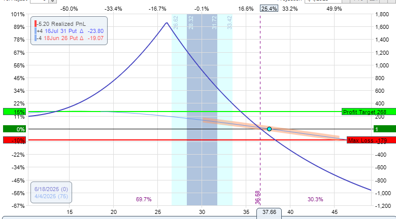 This is more of an experiment. I'm comparing the VIX vertical that I have on to a diagonal. Seeing which works better.