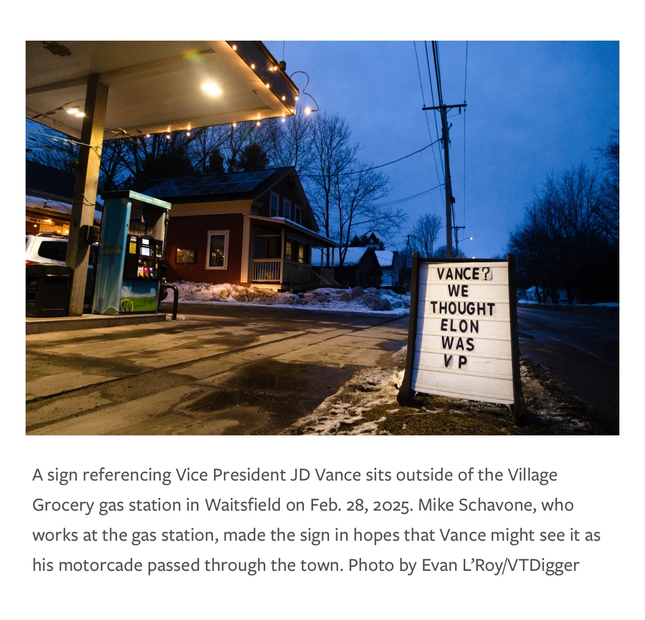 "content": "“On Waitsfield’s Front Porch Forum, multiple posts have detailed the different protests [against J.D. Vance] happening in the Mad River Valley, including a car caravan protest starting at Shaw’s in Waitsfield and plans for banners at Sugarbush ski resort.”\n\nvtdigger.org/2025/02/28/f...\n\nhttps://amanita.us-east.host.bsky.network/xrpc/com.atproto.sync.getBlob?did=did:plc:o7resn4ug7cdrv5lo7gz3teh\u0026cid=bafkreiae2keklhbwdvzoxpoeeelgl4igqm7jsvq4pca2frakw5qw65gi2e",
