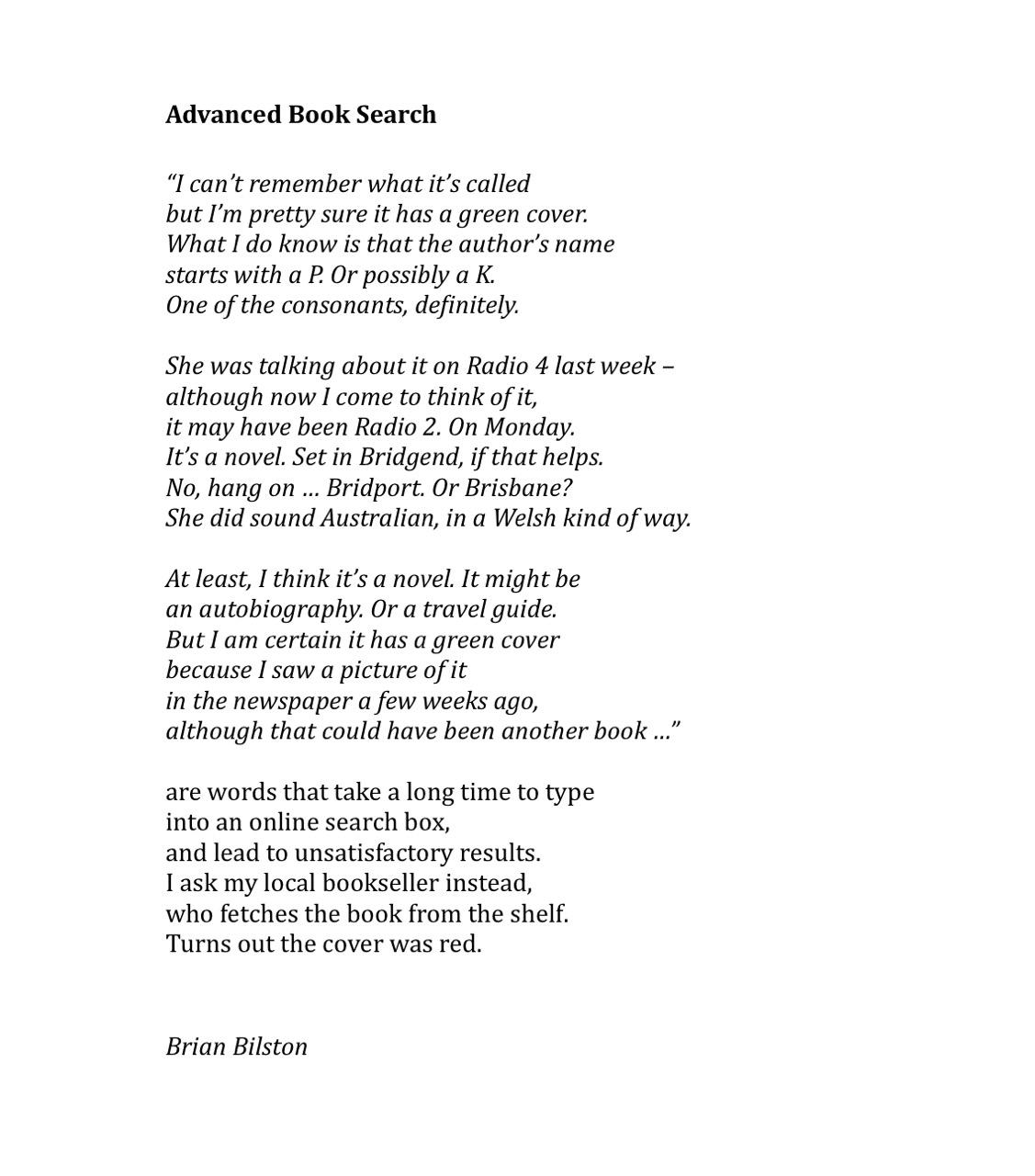 "content": "It’s Independent Bookshop Week. Here’s a poem about one of the many reasons why indie bookshops are so brilliant. \n\n#indiebookshopweek\nhttps://files.mastodon.online/media_attachments/files/114/709/476/838/122/867/original/7e803f1958e5f9ed.jpeg\nhttps://files.mastodon.online/media_attachments/files/114/709/478/351/020/806/original/2446e9a100b764c2.jpeg\n",