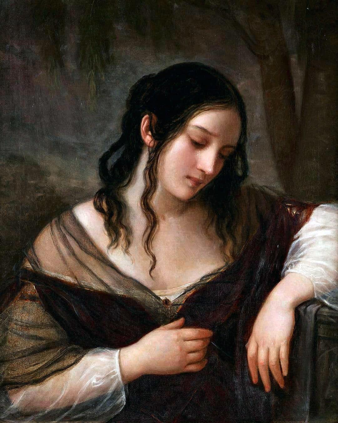 "content": "When you think, and think...and think some more...and there's not a single good thread in the tapestry of your mind. And what's more? You wouldn't have it any other way. \"Sadness\" by Natale Schiavone.\n\n#art #traditionalart #painting #oilpainting #beautifulwoman #beautifulgirl\n\nhttps://cdn.masto.host/socialadamasnemesiscom/media_attachments/files/115/034/492/804/981/169/original/78cae47778f36c89.jpg",