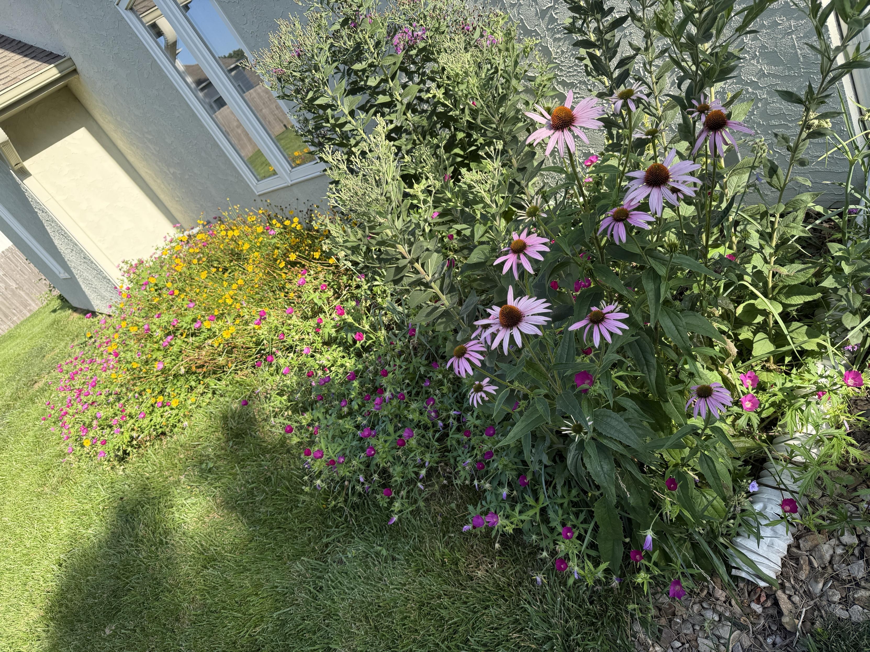 The natives that I planted alongside her house after she moved in, pictured below -- which has the same exact fill soil -- are doing really well. People actually like them! She was even featured in the newsletter a few years ago. They're not a formal garden, but they are a solid pollinator garden. I'm trying to get her neighbors more on board with natives and pollinator gardens, but it is an uphill battle.