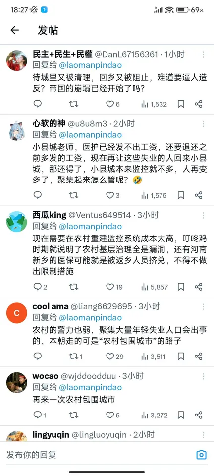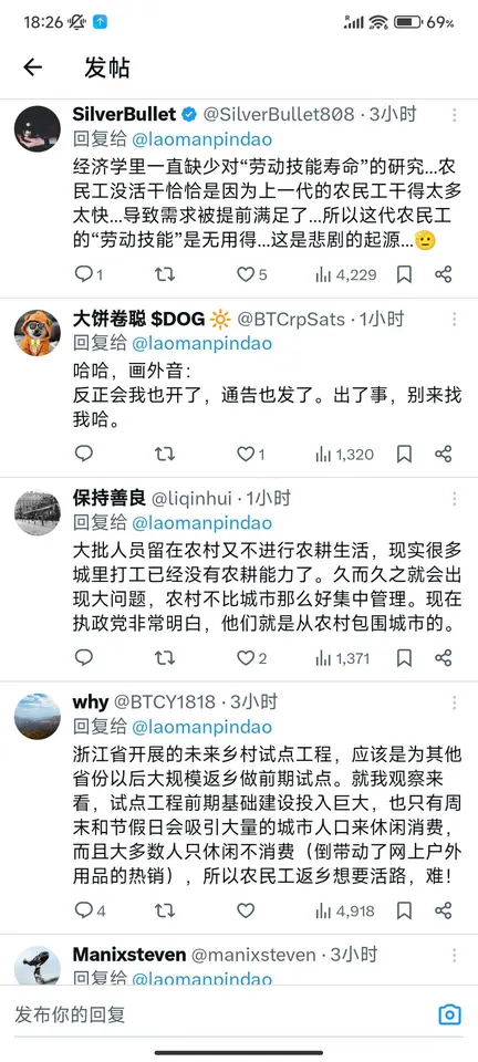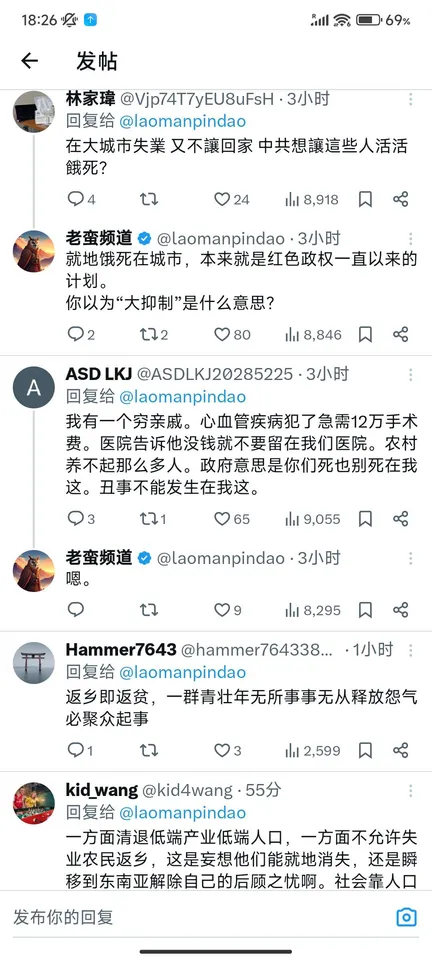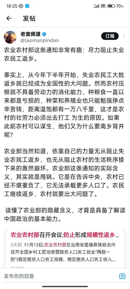 "A short note: 老蛮搬运\n\n回不去的农村,回不去的故乡。\n\n进城务工本就是为生计所迫,在城里找不到活,回村依旧没法赚..."