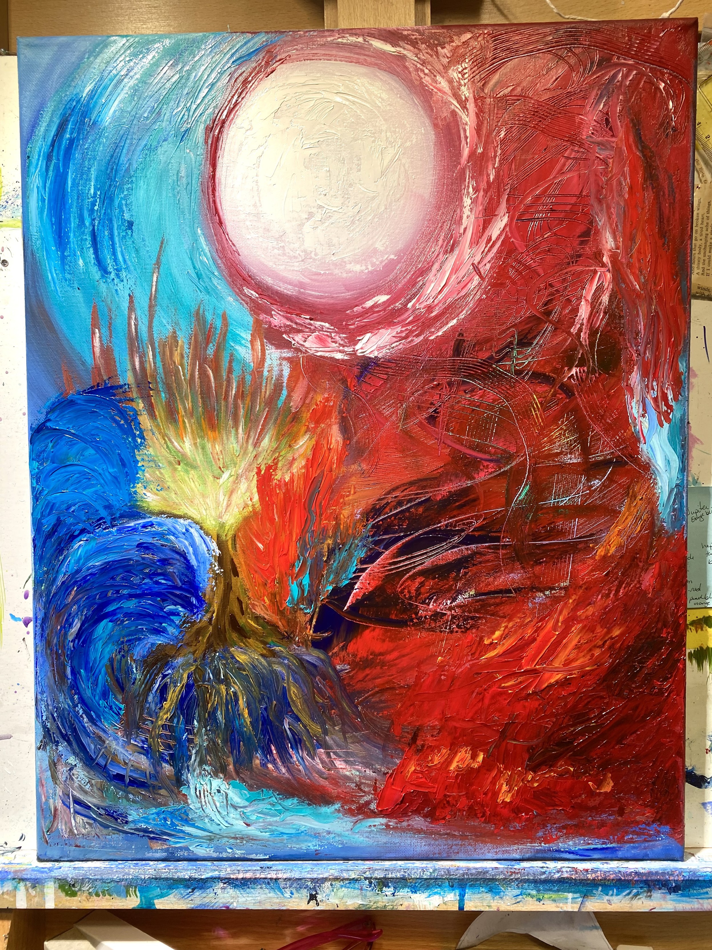"content": "Y’all, you've put up with me complaining about space chickens and a painting I couldn't figure out. Then a friend reminded me “murder your darlings”, and I thought about all the chaos and rage that this month has engendered, and I turned Metallica Black up to 11, put down the brushes, picked up some knives...and I give you, “January 2025”. I really kind of love it. I wish I took better pictures, there’s so much texture and movement in person. \n\n#art #painting #oilpaint #FunWithKnives\nhttps://mefisocial.files.fedi.monster/media_attachments/files/113/930/773/452/666/007/original/b10cf5ffeb2834e8.jpeg\n",