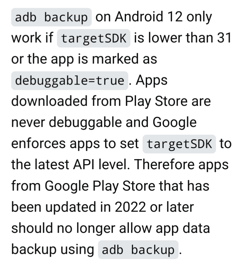 From Android 12 onwards the only way to backup your app data is through Google's cloud. They removed the previously available convoluted way that let you do it yourself to your own computer.