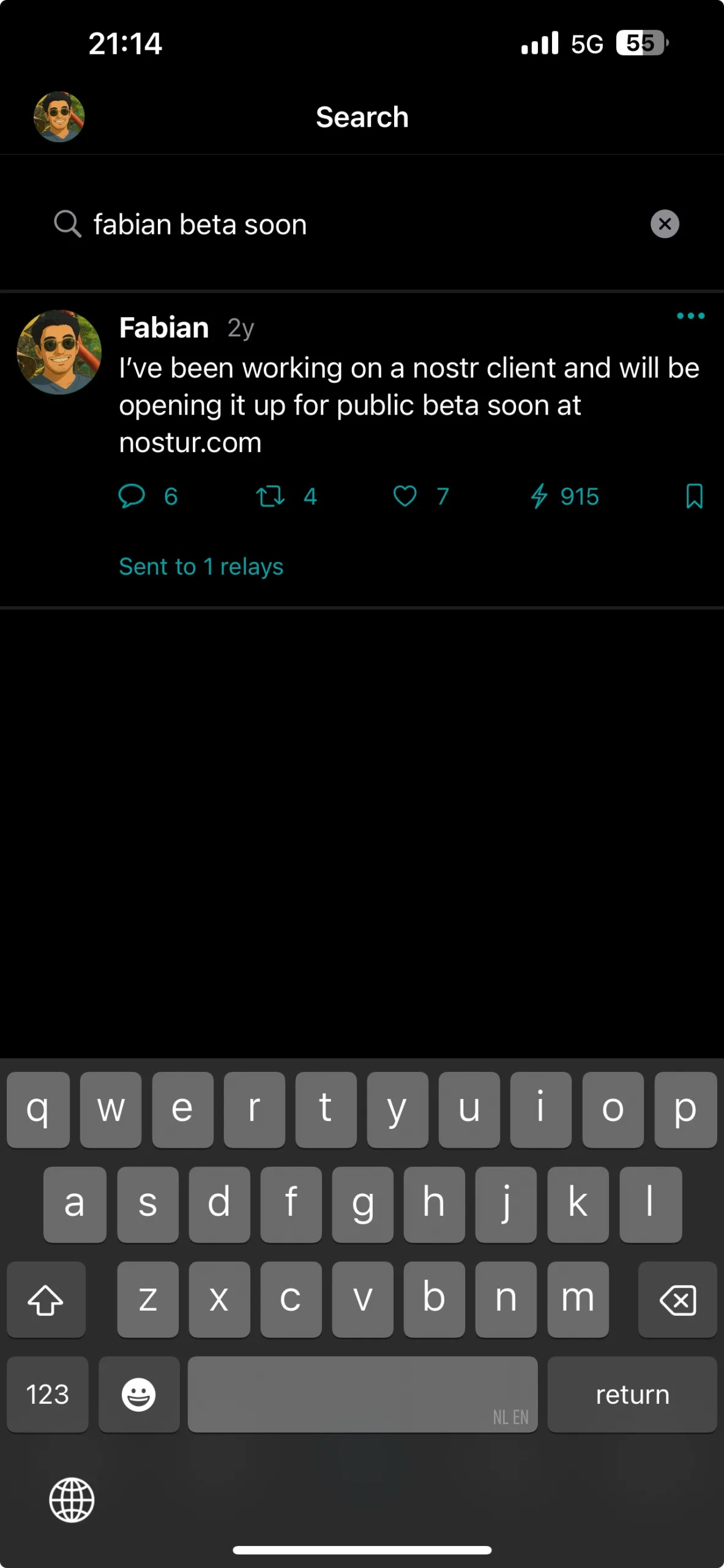 Fabian on Nostr: On Nostur if its just for your own posts you can type your name and keywords in ...