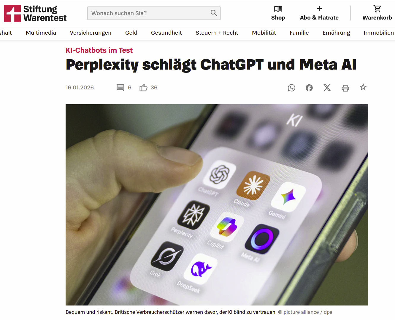 "content": "Nicht immer scheint der Marktführer die beste Lösung anzubieten. Ich kann zu einem Test von Perplexity (www.perplexity.ai) und claude.ai raten.\n\nMehr Infos von #StifungWarentest : https://www.test.de/KI-Chatbots-im-Test-Perplexity-schlaegt-ChatGPT-und-Meta-AI-6275046-0/\n\nhttps://media.norden.social/media_attachments/files/116/318/174/026/251/243/original/368adea721b9da3c.png",
