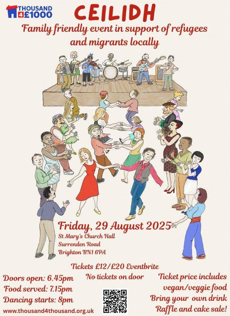 "content": "Fans of ceilidhs, fans of love and fans of homes for refugees (surely equivalent sets) are in for a treat this Friday. It is the T4 Ceilidh in Brighton. See you there:\n\nhttps://www.eventbrite.co.uk/e/thousand-4-1000-ceilidh-2025-tickets-1403871029039\n\n#Brighton, #Ceilidh, #Migration, #RefugeesWelcome\nhttps://kolektiva.social/system/media_attachments/files/115/105/770/614/808/264/original/a4eea874a76b8d6b.jpg\n",