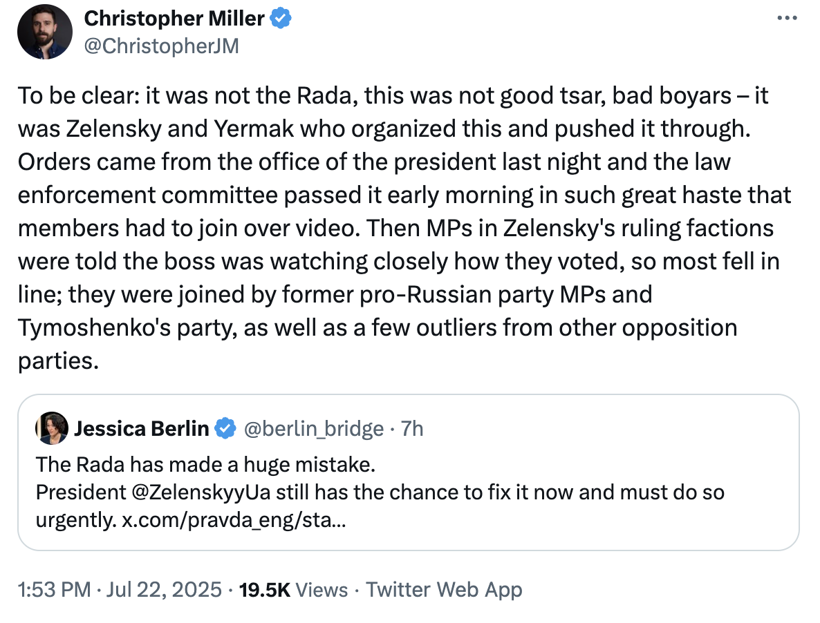 Unclear how many of Zelensky’s admirers in the West actually read about political developments in Kyiv, but the Ukrainian president’s personality cult might take a hit today among those who follow the news.