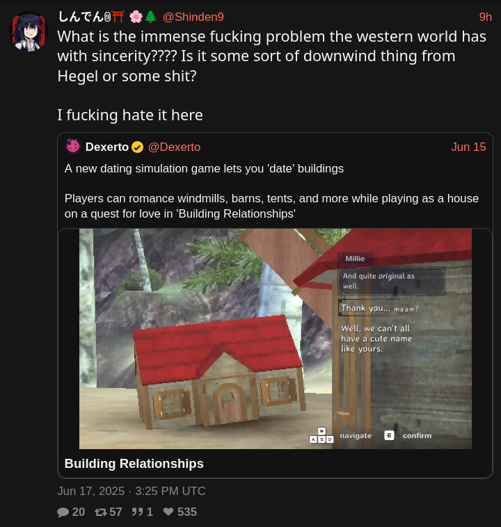 Lapin on Nostr: \>What is the immense fucking problem the western world has with sincerity????\ now i ...