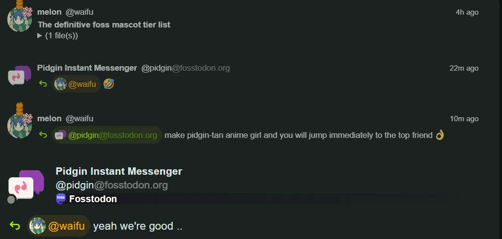 "content": "What do you think of Pidgin-tan?\nWhere should we place her?\n\nRE: https://mai.waifuism.life/notes/agb2jqjldtea15a6\n\nnostr:nevent1qyt8wumn8ghj7un9d3shjtnyd968gmewwp6kytcqyr8ngxtxx3hlvr6pkz7hkuadg4mrsr7vvmvq6qvctugkm8z76nt9kd6sw7v\n\nhttps://mai.waifuism.life/files/f56aba8b-e706-4290-99cb-776371b62013\nhttps://mai.waifuism.life/files/1aff935d-ef06-442d-b396-e0e7808d8cce",