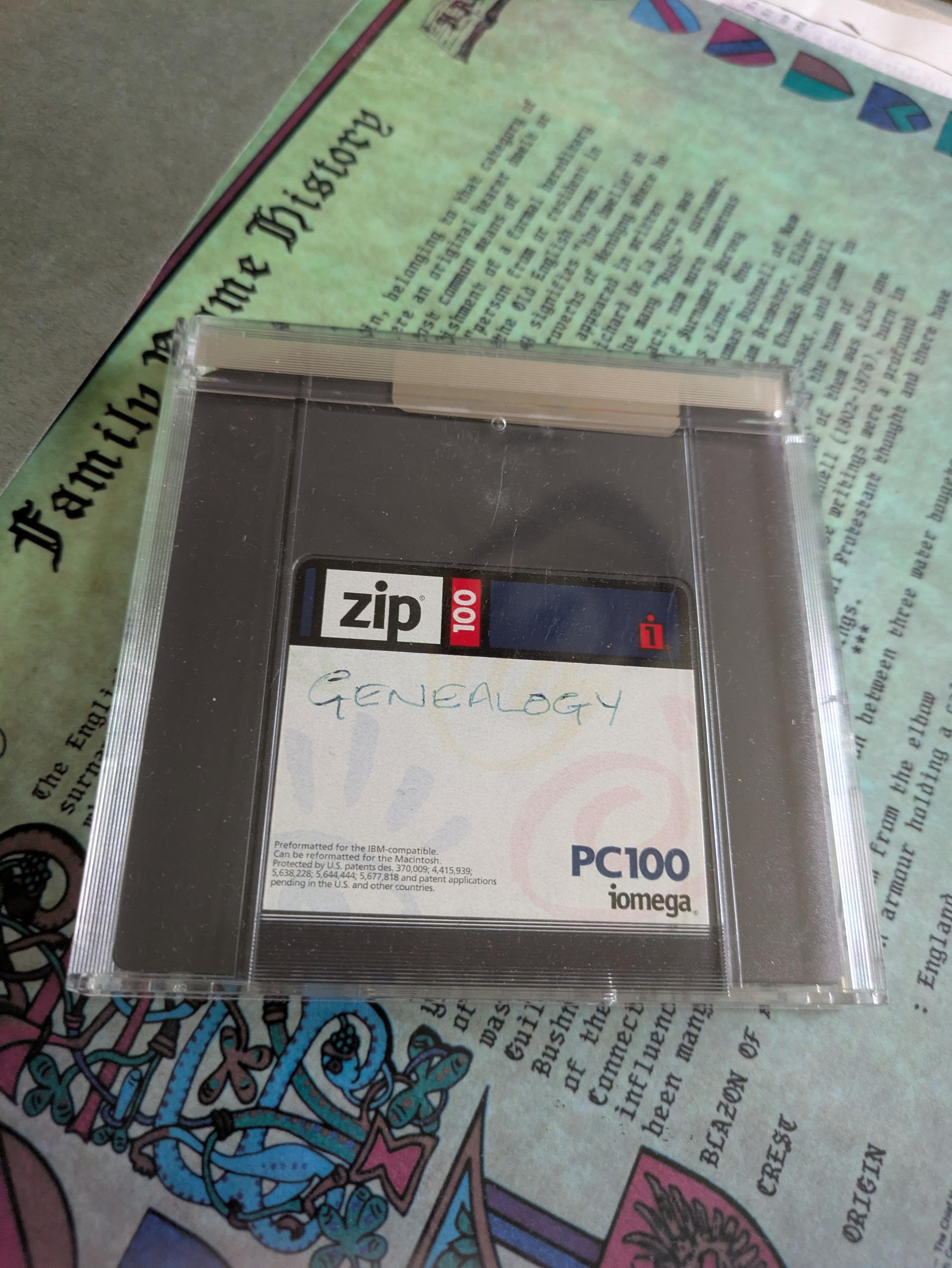 My stepmum just delivered my dad's genealogy stuff from the early 90s and it came with a zip floppy disk.