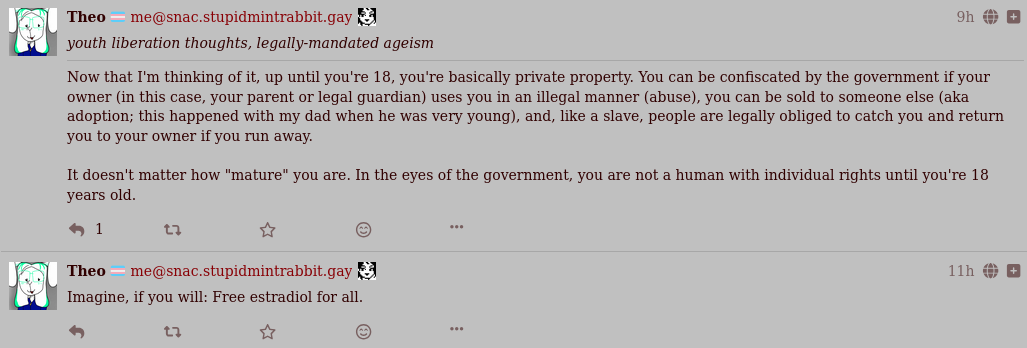 meso (nprofile…5vpa) Juno :neocat_flag_trans: (nprofile…s6ag) like that nigger talked about youth liberation and estrogen supplements 2 hours apart, he's not being subtle at all about it