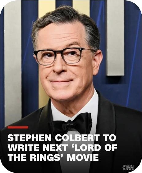 "content": "#StephenColbert to pen next #LOTR script!! OMGGGGGGGGGGG!!! He is a brilliant choice bc he's practically a #Tolkien scholar. https://edition.cnn.com/2026/03/25/entertainment/colbert-lord-of-the-rings-hnk\n\nhttps://cdn.vmst.io/media_attachments/files/116/292/142/944/782/649/original/9af188f266fae7fa.jpg",