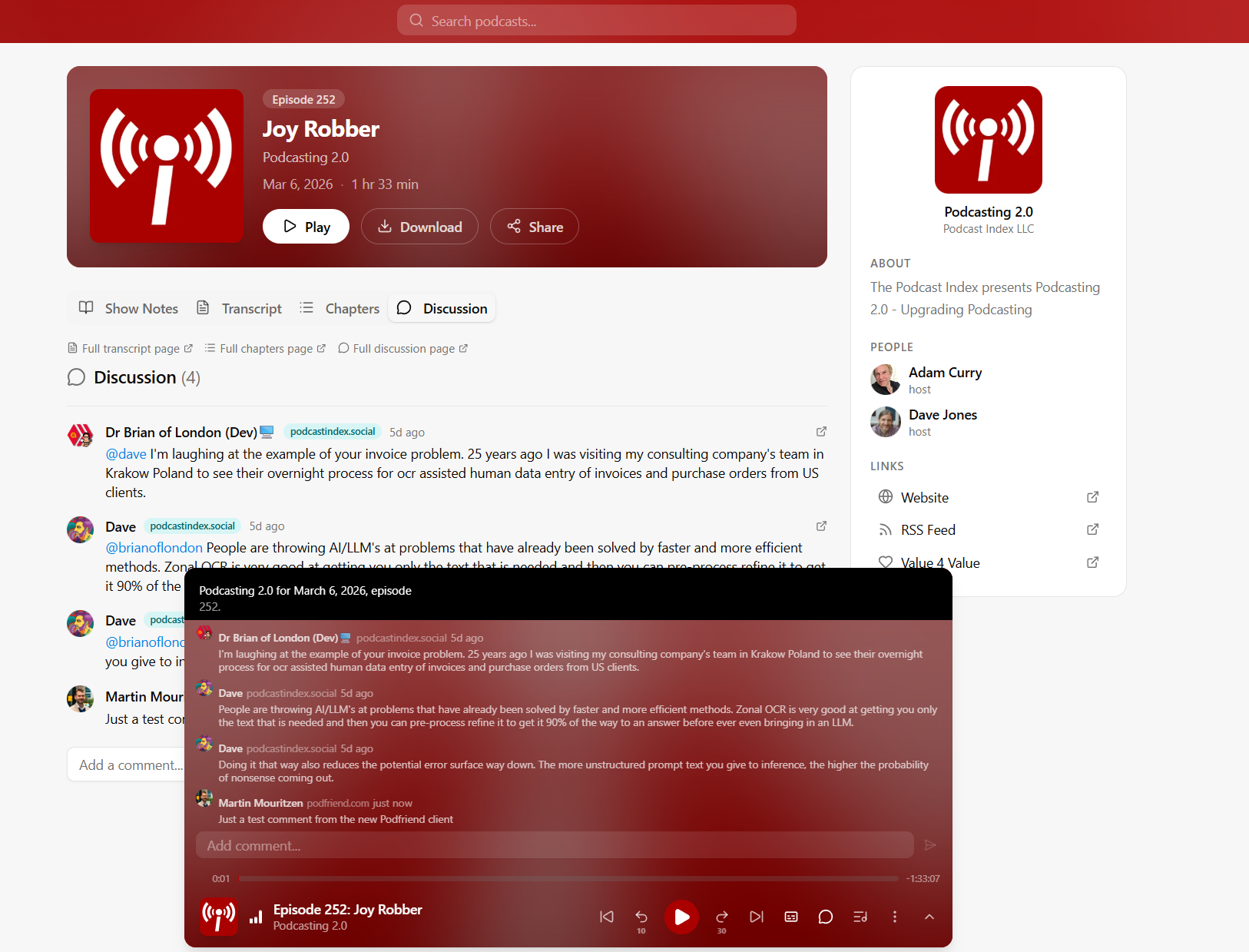 Martin Mouritzen :podfriend: on Nostr: Testing ActivityPub comments both on page and in the player. It's not federating yet, ...Testing ActivityPub comments both on page and in the player. It's not federating yet, but.... Soon!