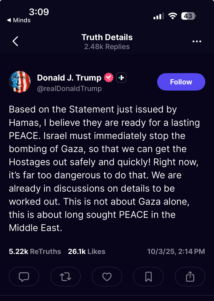 "content": "Lets do this!\nEnough war\nhttps://www.minds.com/fs/v1/thumbnail/1820971351339438080/xlarge/?jwtsig=eyJ0eXAiOiJKV1QiLCJhbGciOiJIUzI1NiJ9.eyJleHAiOjE3NjQ1NDcyMDAsInVyaSI6Imh0dHBzOi8vd3d3Lm1pbmRzLmNvbS9mcy92MS90aHVtYm5haWwvMTgyMDk3MTM1MTMzOTQzODA4MC94bGFyZ2UvIiwidXNlcl9ndWlkIjpudWxsfQ.rrES4t-QGobS1ouYOvORJQtRvFU-xc0-pnZUAG-NeGo\n",