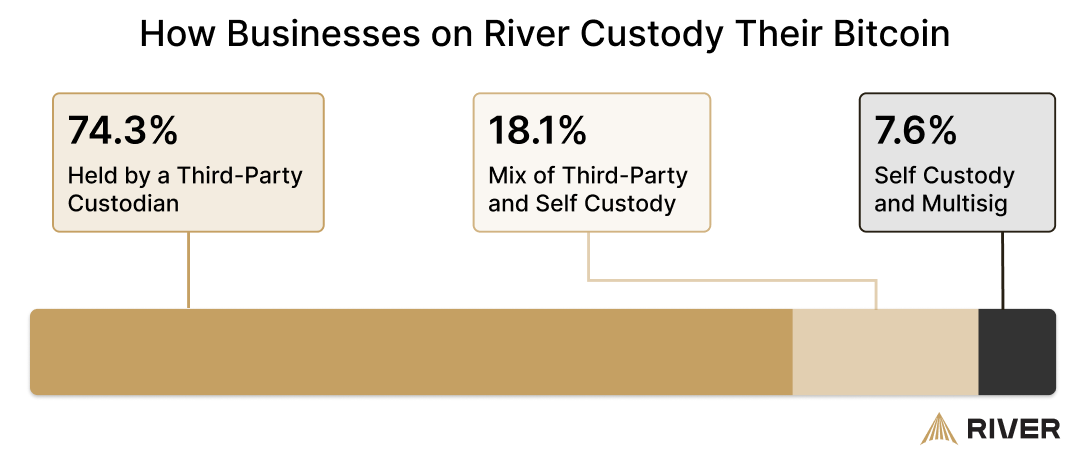 74% of businesses on River rely on third-party custodians for #Bitcoin.