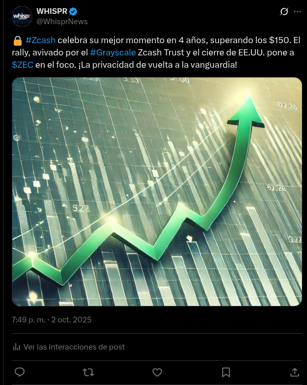 WhisprNews on Nostr: 📈 $ZEC : ¡El rally de la privacidad en #cripto!