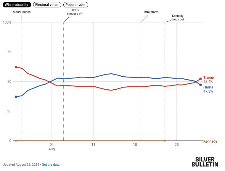 "content": "Nate Silver says Trump is now the front runner. Stay in the fight.\n#USPol\nhttps://weirdautos.files.fedi.monster/media_attachments/files/113/046/930/979/228/408/original/52691210a1625ad0.png\n",