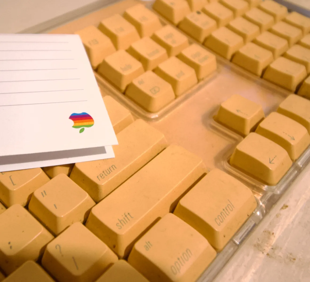 "content": "As yellowed a piece of mac gear as I've ever owned.\n\nI suspect some kind of wacky chemical exposure in the environment it was used in.\nhttps://files.bitbang.social/media_attachments/files/116/423/137/273/043/013/original/be2b87128535203f.png\nhttps://files.bitbang.social/media_attachments/files/116/423/138/428/240/806/original/16c0ce34279f10a5.png\nhttps://files.bitbang.social/media_attachments/files/116/423/142/540/168/551/original/32bb152dfafa190d.png\nhttps://files.bitbang.social/media_attachments/files/116/423/143/542/375/466/original/2e2c4e800f4c77ea.png\n",