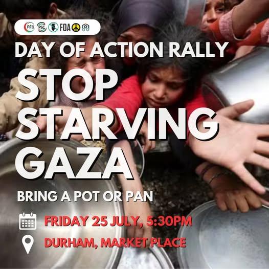 This Friday at 5:30 join our emergency action in Market Place, Durham. Bring pots and pans 🍉🍉🍉