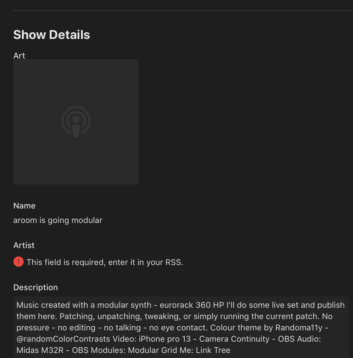 aroom on Nostr: not an GitHub issue yet. but an issue into my podcast connect account.