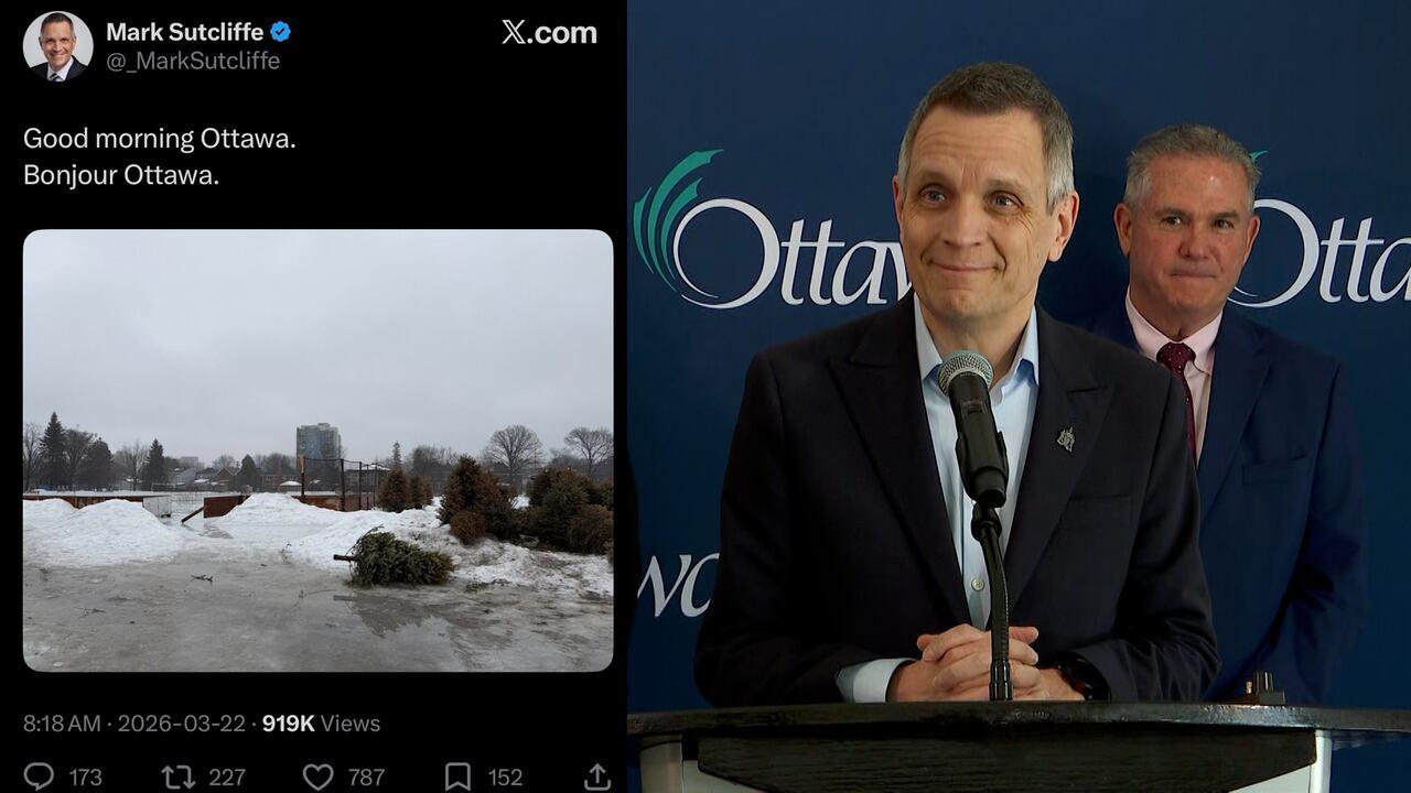 "content": "Mayor reacts to online chatter over his gloomy scenic shots of Ottawa\nOne of Ottawa Mayor Mark Sutcliffe's daily X posts, a cloudy image of a melting outdoor rink, has gone viral and sparked comment about his posting of gloomy scenic shots of the city. Joseph Tunney asked Sutcliffe about the online chatter during a news conference Friday.\nhttps://www.cbc.ca/player/play/9.7145236?cmp=rss\n\nhttps://files.hongkongers.net/media_attachments/files/116/303/195/550/663/206/original/d1ece3d86fbe692a.jpg",