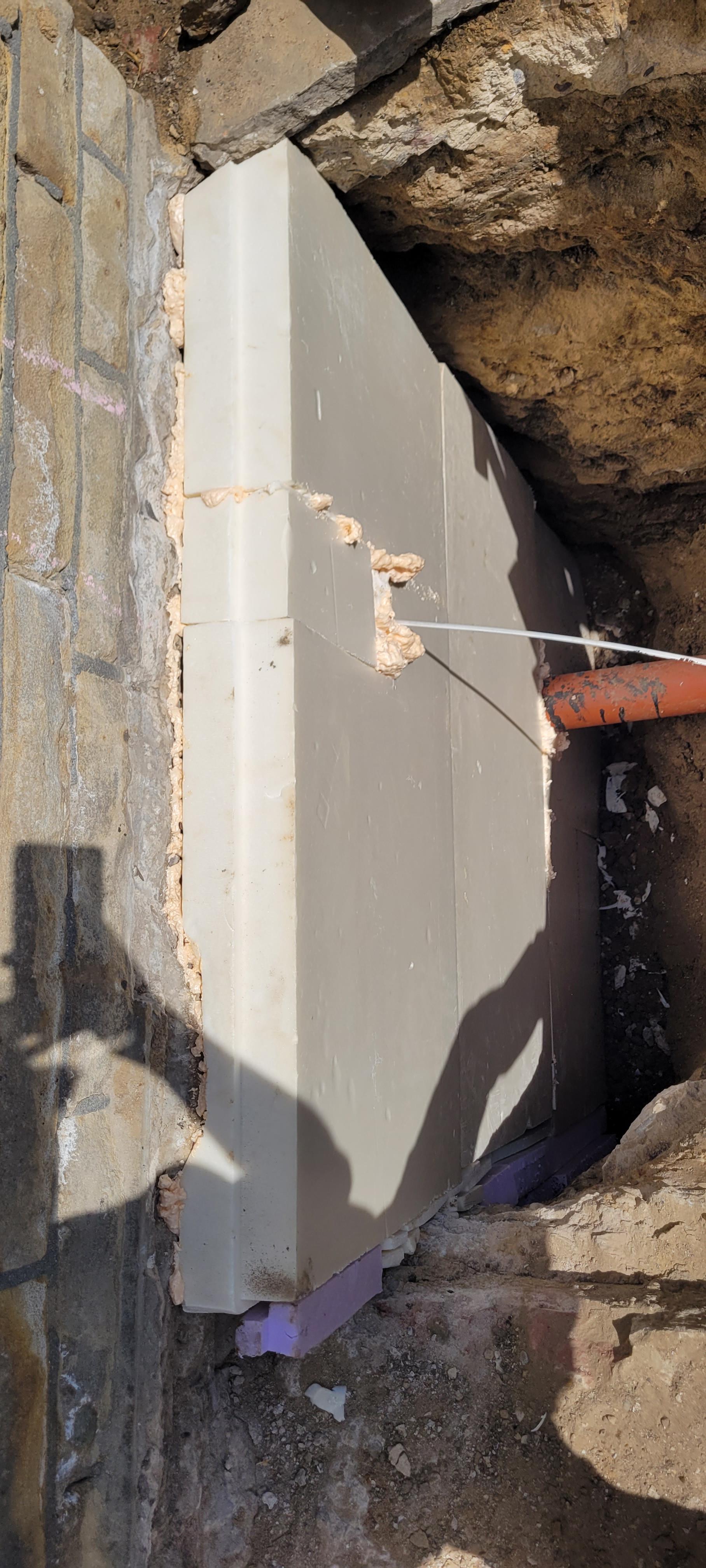 ➡️ Wand mit 12 cm XPS gedämmt. Im Neubau längst Standard. Baumarkt Typ wollte nur 6 cm verkaufen...
