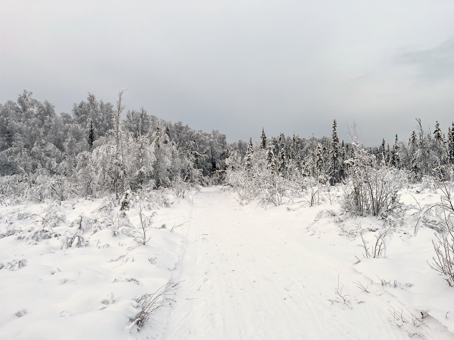 Rick Thoman on Nostr: A flat light kind of Sunday morning at Creamer's Field near Fairbanks. Trail in good ...