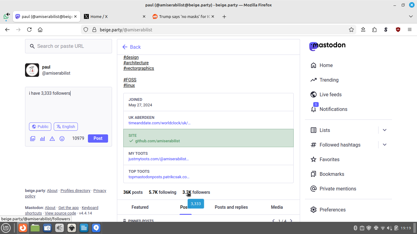 "content": "i have 3,333 followers\nhttps://media.beige.party/media_attachments/files/116/280/104/675/297/002/original/9086260b6c24cc5d.png\n",