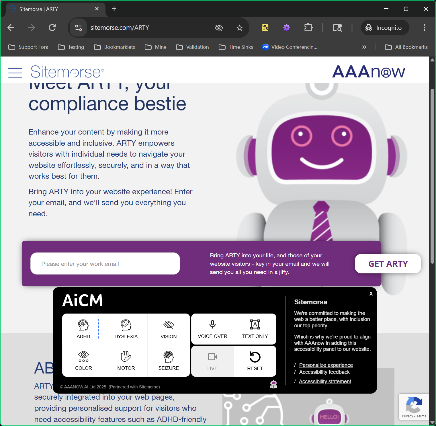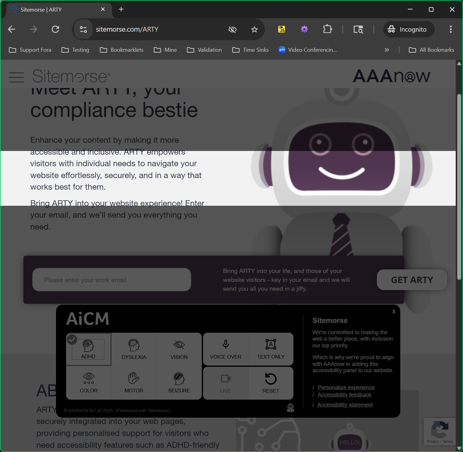 "content":"The first image is the default state of the Sitemorse ARTY page.\n\nThe second is with the ARTY ADHD feature activated. It desaturates and darkens the page, providing a non-darkened horizontal bar which follows your mouse pointer.\n\nThat’s the entirety of the ADHD feature.\n\nhttps://assets.toot.cafe/media_attachments/files/114/857/450/783/386/047/original/06a1cddc1472e94a.png\nhttps://assets.toot.cafe/media_attachments/files/114/857/451/092/320/362/original/a7e7030550318f2d.png",