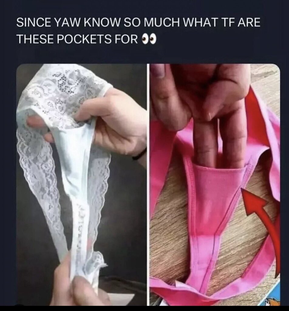 "content": "Since Ya’ll know so dam much, what the hell are these pockets for?👀\n#minds \nhttps://cdn.minds.com/fs/v1/thumbnail/1892683277123198976/xlarge/\n",
