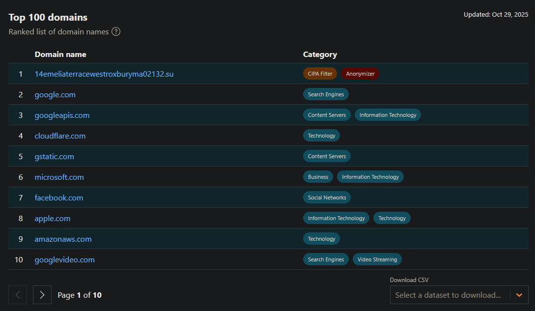 Dark Web Informer :verified_paw: on Nostr: Lol, wtf... currently the Aisuru botnet C2 domain is ranked #1 in the world of top ...Lol, wtf... currently the Aisuru botnet C2 domain is ranked #1 in the world of top domains.